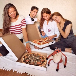 Пицца всем оочень понравилась,тесто супер,начинки много,сегодня утром доедала-даже холодная вкусная! Большое спасибо!